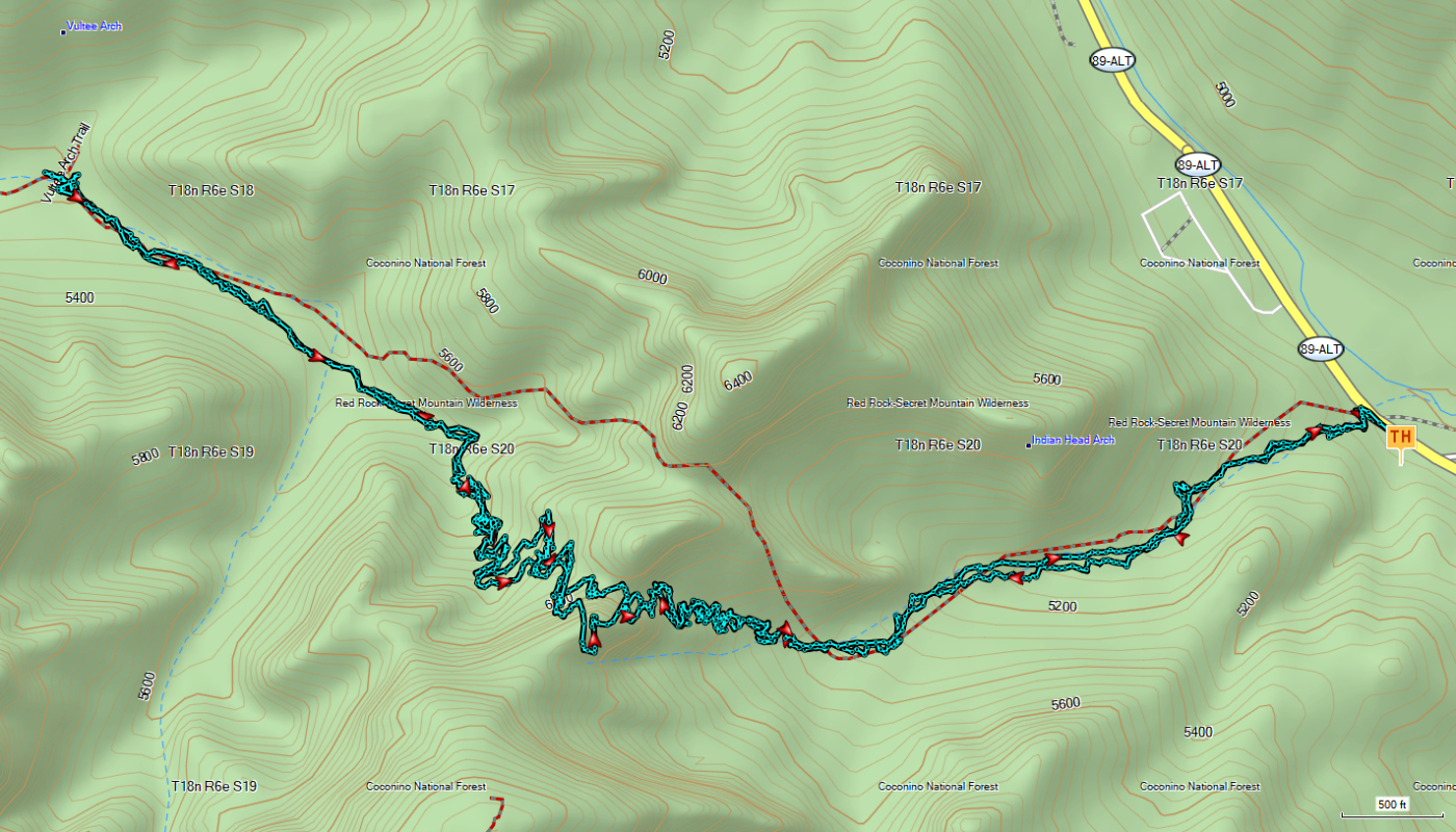 Steep - Rocky - Brushy - Scenic Rocks - Through to Vultee Arch